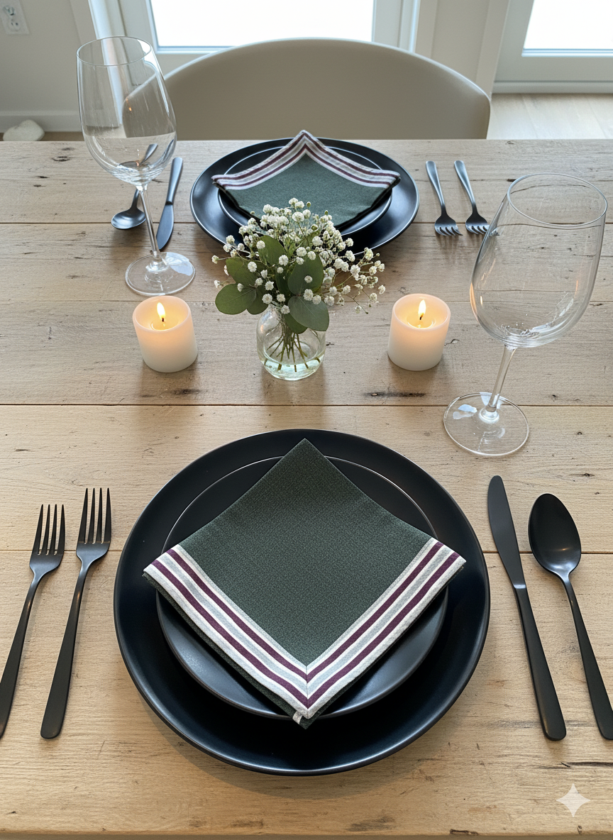 De Serviett med bomullskant er laget av 100 % premiumbomull , valgt for sin pusteevne, naturlige tekstur og miljøvennlige kvalitet. Bomull er et tidløst stoff kjent for sin holdbarhet og evne til å mykne opp elegant ved bruk. Det er et bevisst valg for moderne verter som verdsetter både skjønnhet og bærekraft.
