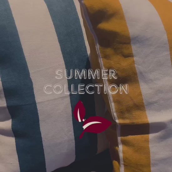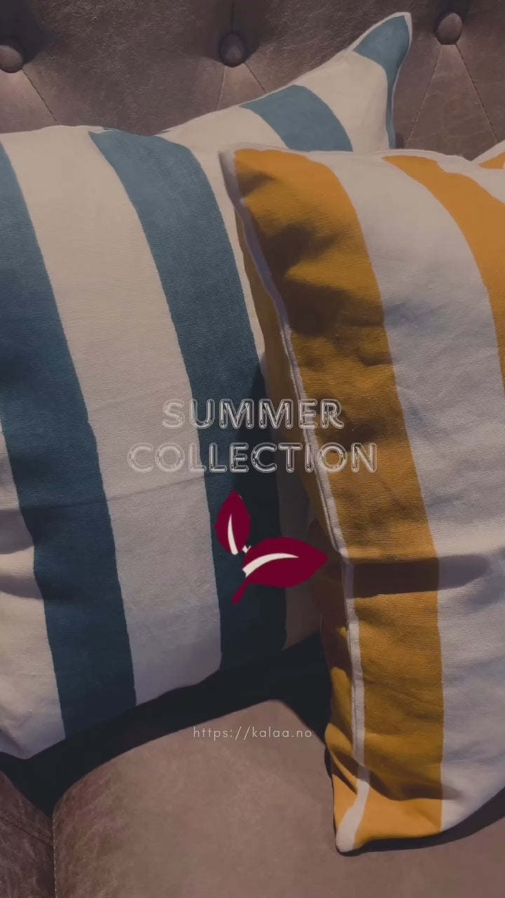 The stripes are carefully woven by skilled artisans, creating a soft yet striking contrast that reflects the beauty of handmade craftsmanship. The vibrant yellow and crisp white palette adds a cheerful yet refined touch, perfect for brightening any room. The breathable linen fabric enhances the organic texture, making it an ideal addition to both modern and traditional interiors. Crafted with care and inspired by sunshine, it brings warmth and natural elegance to your home.